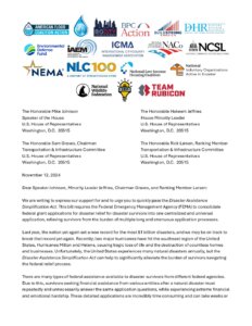 Letter signed by NEMA and 17 other coalition partners in support of the Disaster Assistance Simplification Act.
